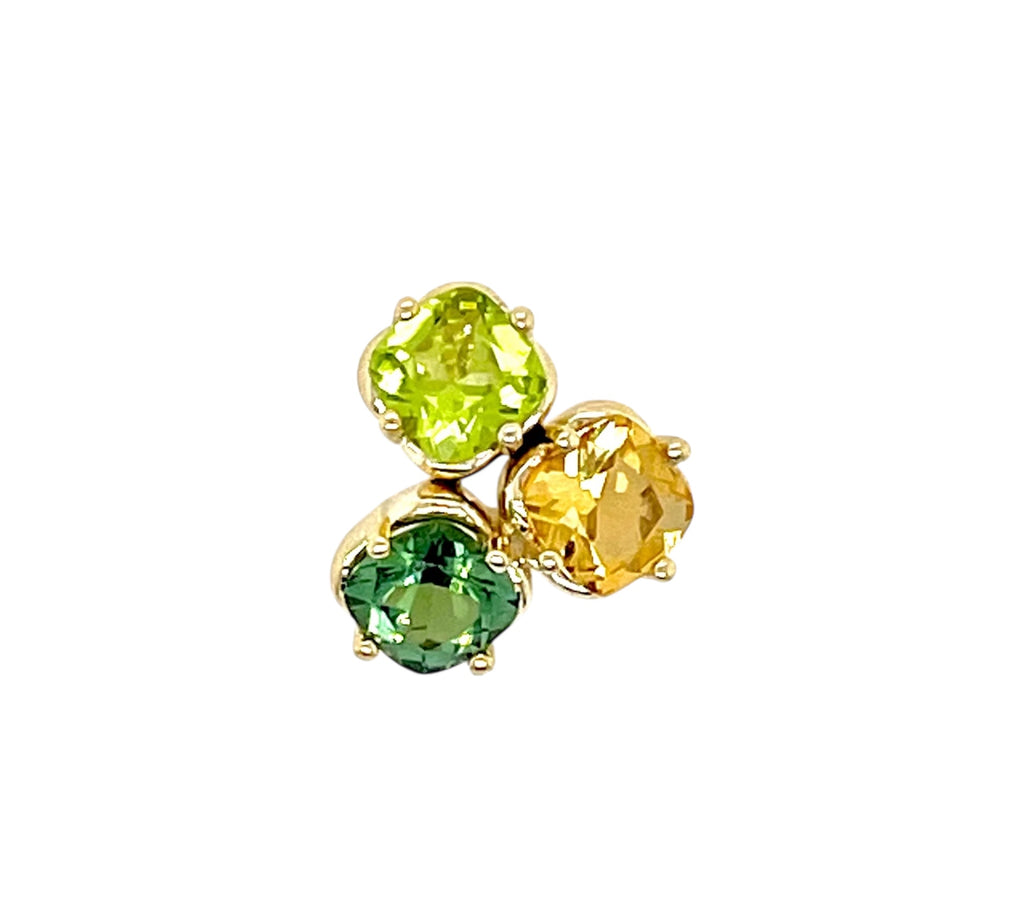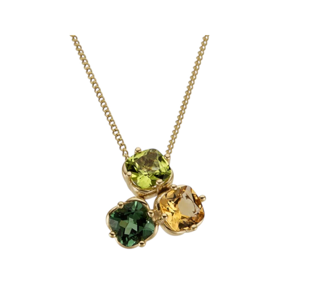 Stunning 9ct Yellow Gold Three Colour Gems Pendant, Feature with