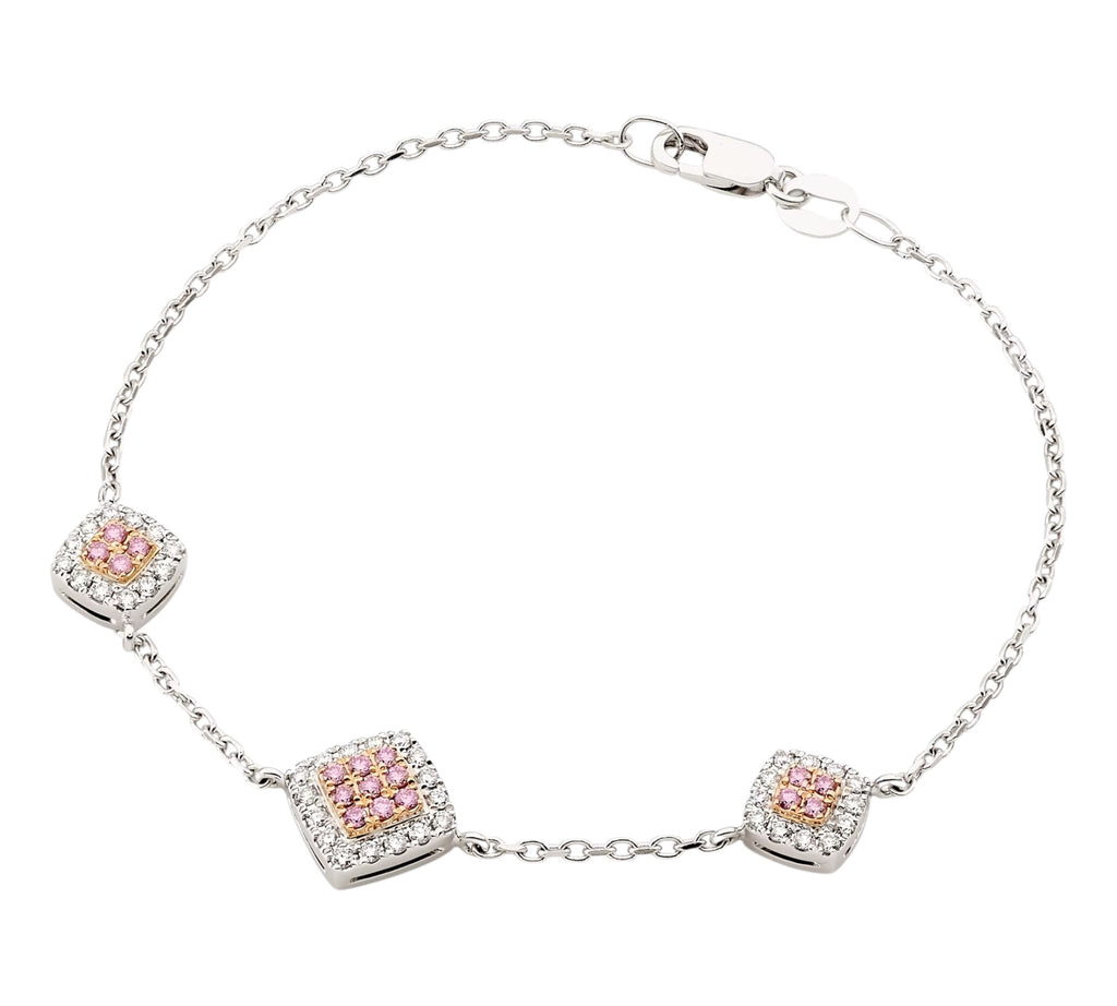 Elegant 18ct White Gold & Rose Gold Diamond Australian Pink and White Diamond Bracelet.