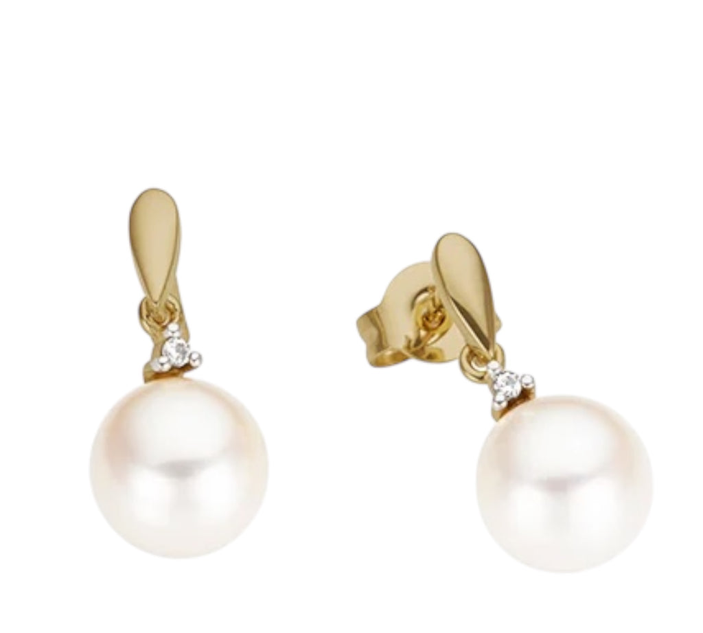 18ct Yellow Gold Australian south sea Pearl & Diamond Pendant Features with Total = 2pt H/SI Round cut Diamond.